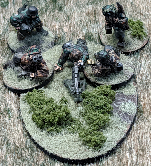 As with my Soviets, I did not paint this German force, rather I planned it out and finished the basing. In this case my brother did all the hard work in painting a motley collections of late war SS figures. Not an enviable job.